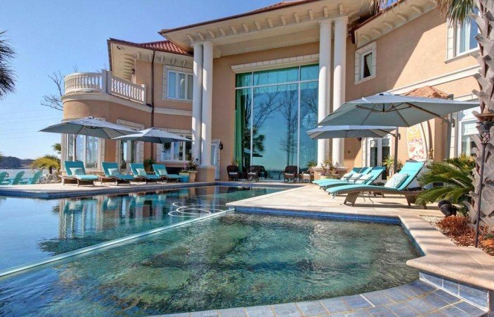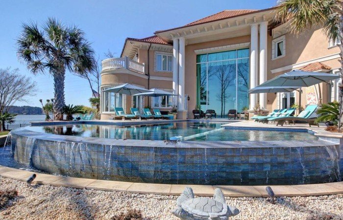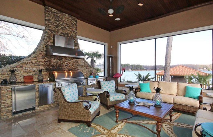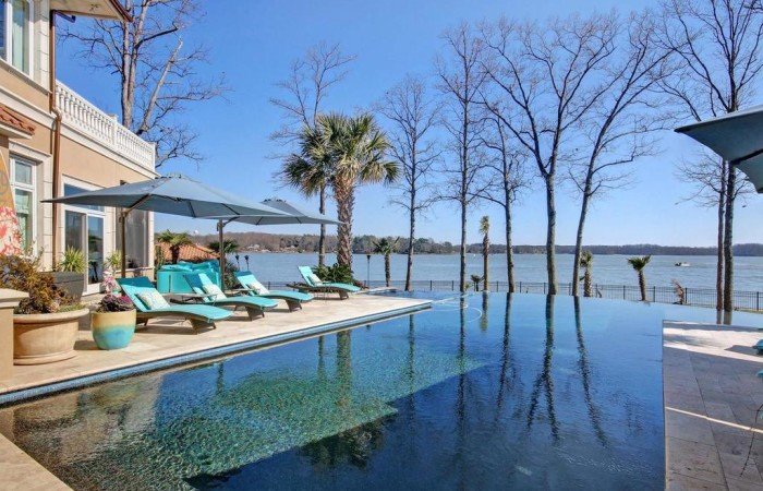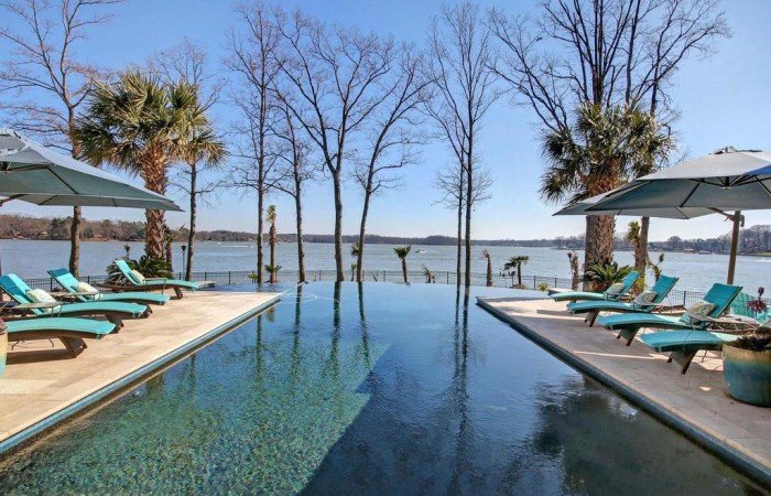Wide open views….one of the best on LKN! Home has been completely renovated, inside & out, with top of the line products. Italian marble flooring throughout lower level. Infinity, salt water pool & hot tub. Water views from every room & porches off every bedroom. It has the WOW FACTOR from every room!
