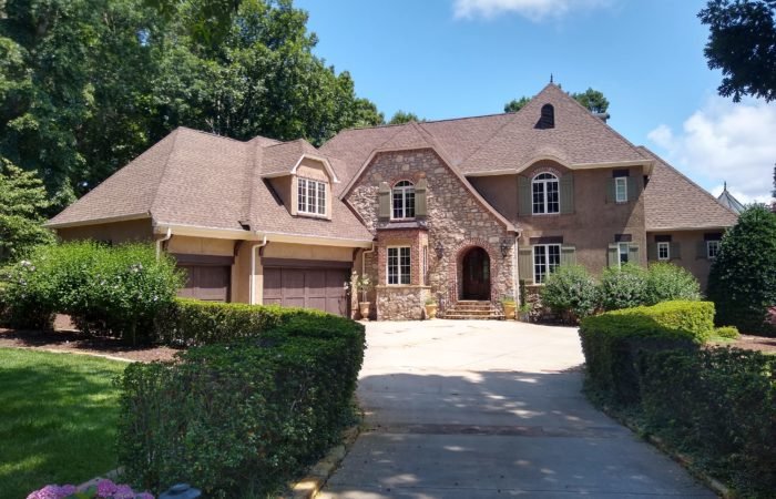 The VILLAGE in the Point-Waterfront home w/a private pool! This home offers everything! Dining room. 2 story great room w/lighted coffered ceiling, fireplace w/built-ins, wall of windows to soak up that lake view! Open to kitchen w/kitchenaide 6 brnr gas range/oven, built-in fridge, warming tray, bar w/seating & lrg eating area. Master on main w/lighted tray ceiling, sitting area & exit to veranda. Ensuite bath w/dual vanities, jetted tub & walk-in shower. Dual closets. Dbl door entrance to office on main. Laundry w/drop zone. Upper lvl has BR1 w/ensuite bath. BR2 has bath w/exit to hallway & dual closets. BR3 is spacious! Bonus room has dbl knee doors for attic storage. Dbl door entrance to second office. Flagstone terrace across back. Lower lvl has great rm w/fireplace. Travertine floor. Kitchen area. Rec area. Media room. Lrg room w/exit to back patio. Full bath. Exercise room. 2nd laundry-lwr lvl. Pool w/large travertine patio area. Completely private!