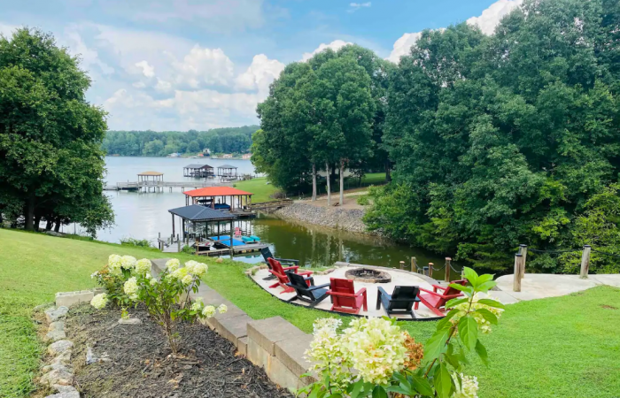 The lower level offers a wonderful family room space, 3rd bedroom, full bath. Stepping out to your covered patio leads to a lakeside fire pit. A lower garage/workshop offers abundant storage for lake & lawn toys! Covered dock for your boat, 2 carports & Lot’s of parking both main & lower level. New HVAC system too! Proven Vacation Rental potential(furnishings negotiable)
