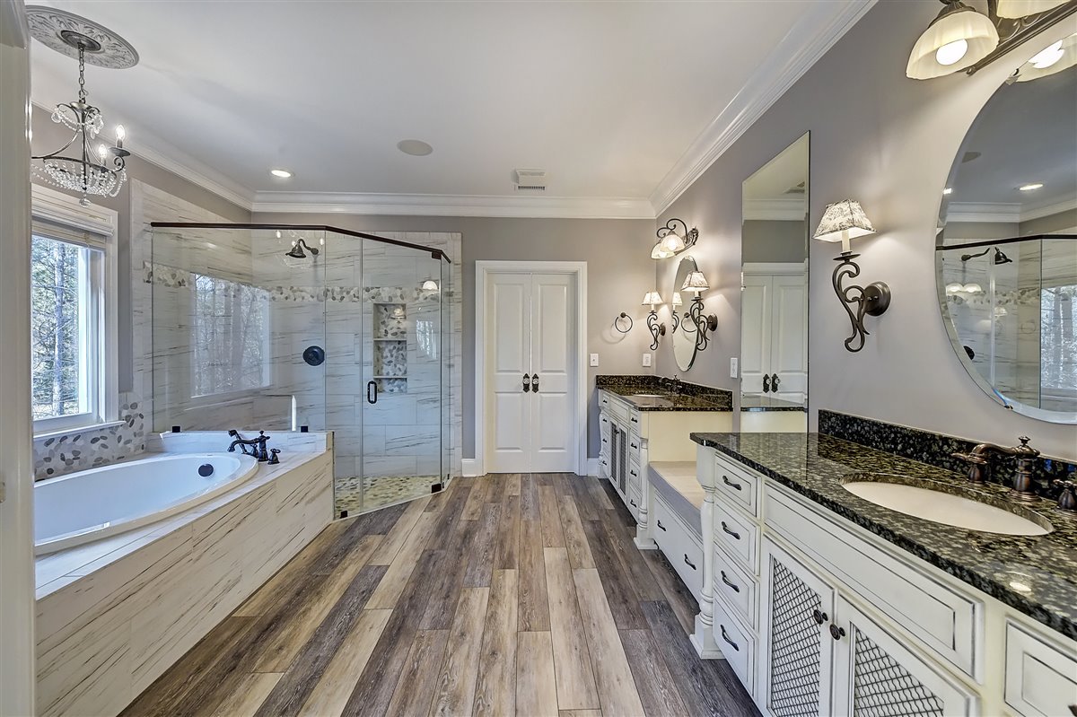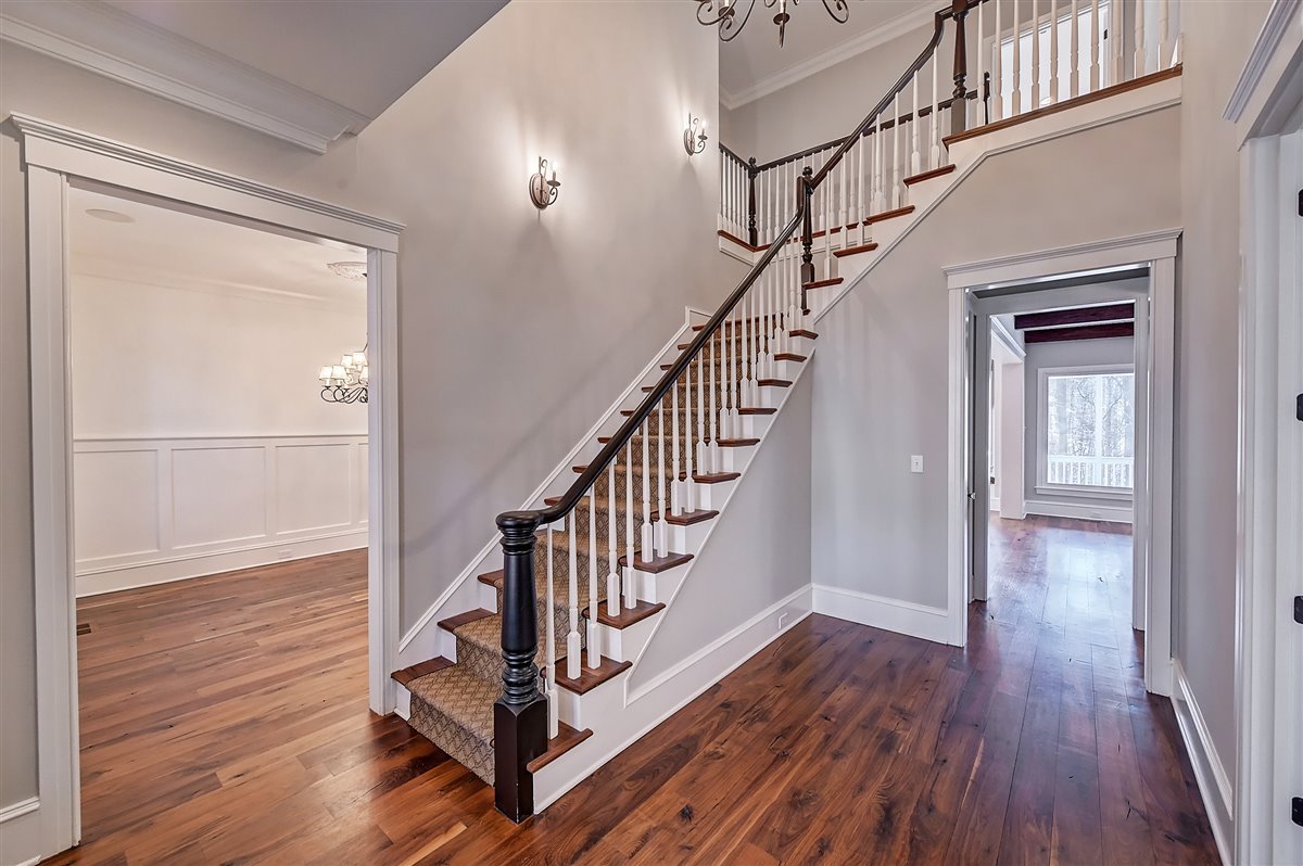 RARE FIND in the Farms! Private 1.78ac wooded lot, 5352 sqft custom built that will have you feeling at home the moment you pull into the drive. A grand wrap around porch welcomes your arrival. The interior features walnut flooring, extensive molding, and high end finishes throughout.