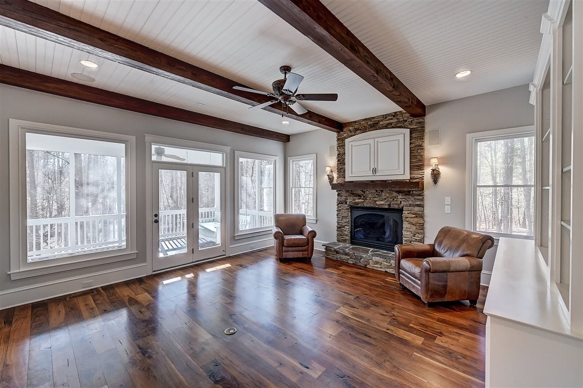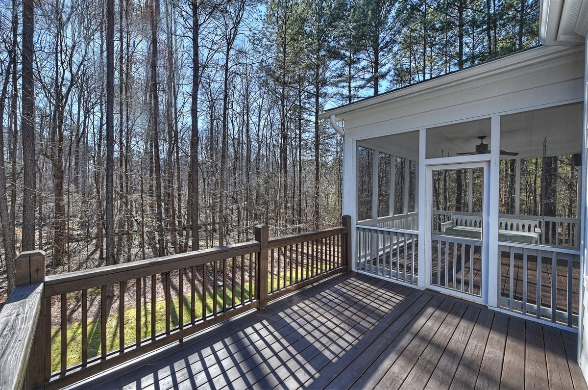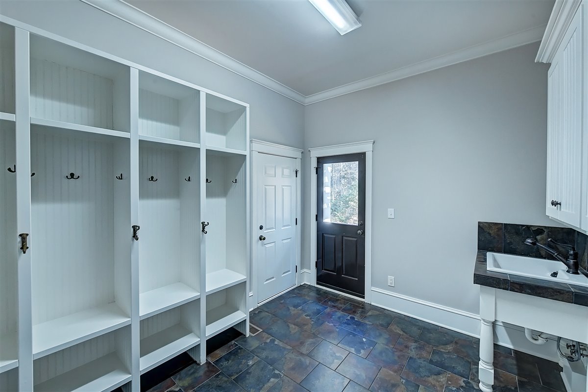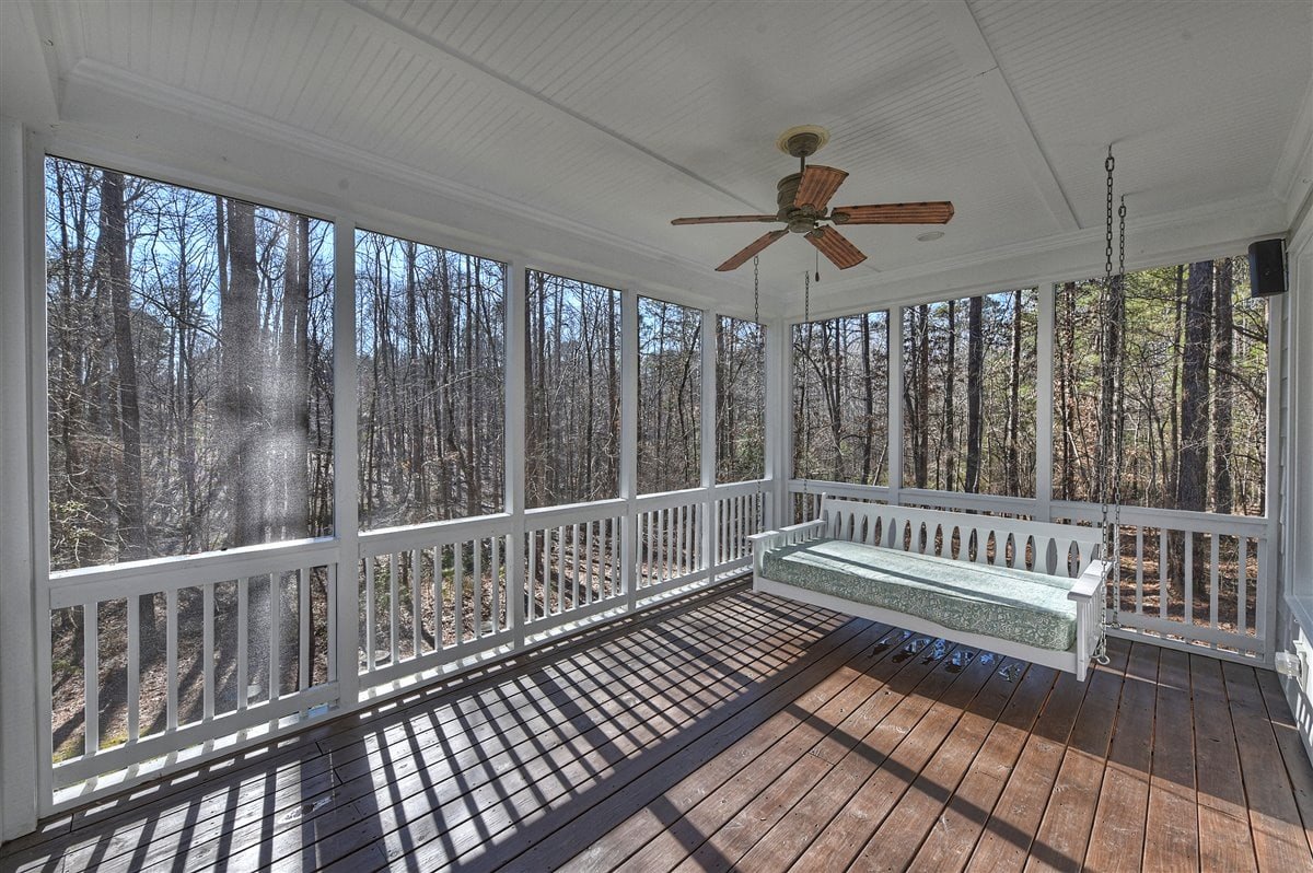 The the large gourmet kitchen w/benched bay window seating opens up to the wood beamed great room, with a beautiful stone fireplace. Step out to screened back porch and enjoy nature on your hanging bed swing. Large walk in pantry, laundry room w/drop zone and laundry chute. Upper level offers 4 bedrooms and a bonus/play room. Grand master suite includes sitting room, overlooking wooded yard.
