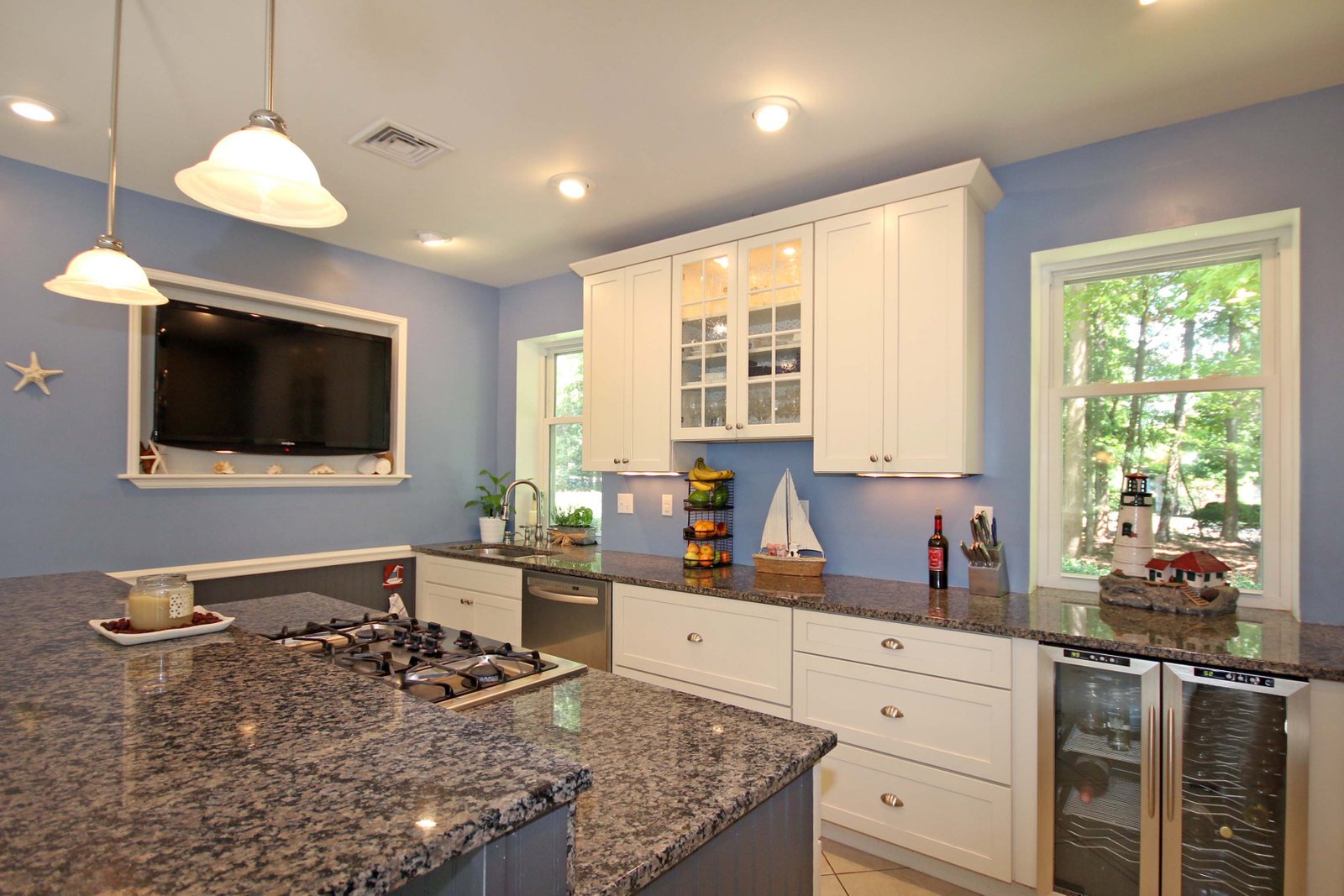 Updated entertainers kitchen with island, stainless, gas cook top, wine cooler, convection oven w/warming drawer.