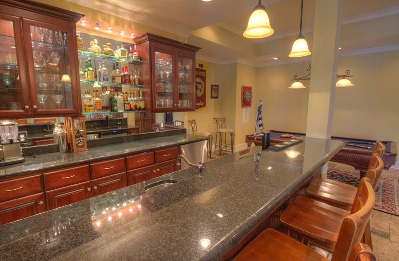 Lower level w/bar, kegerator, pool hall, exercise room, den & bdrm/bath, all walk out to pool.
