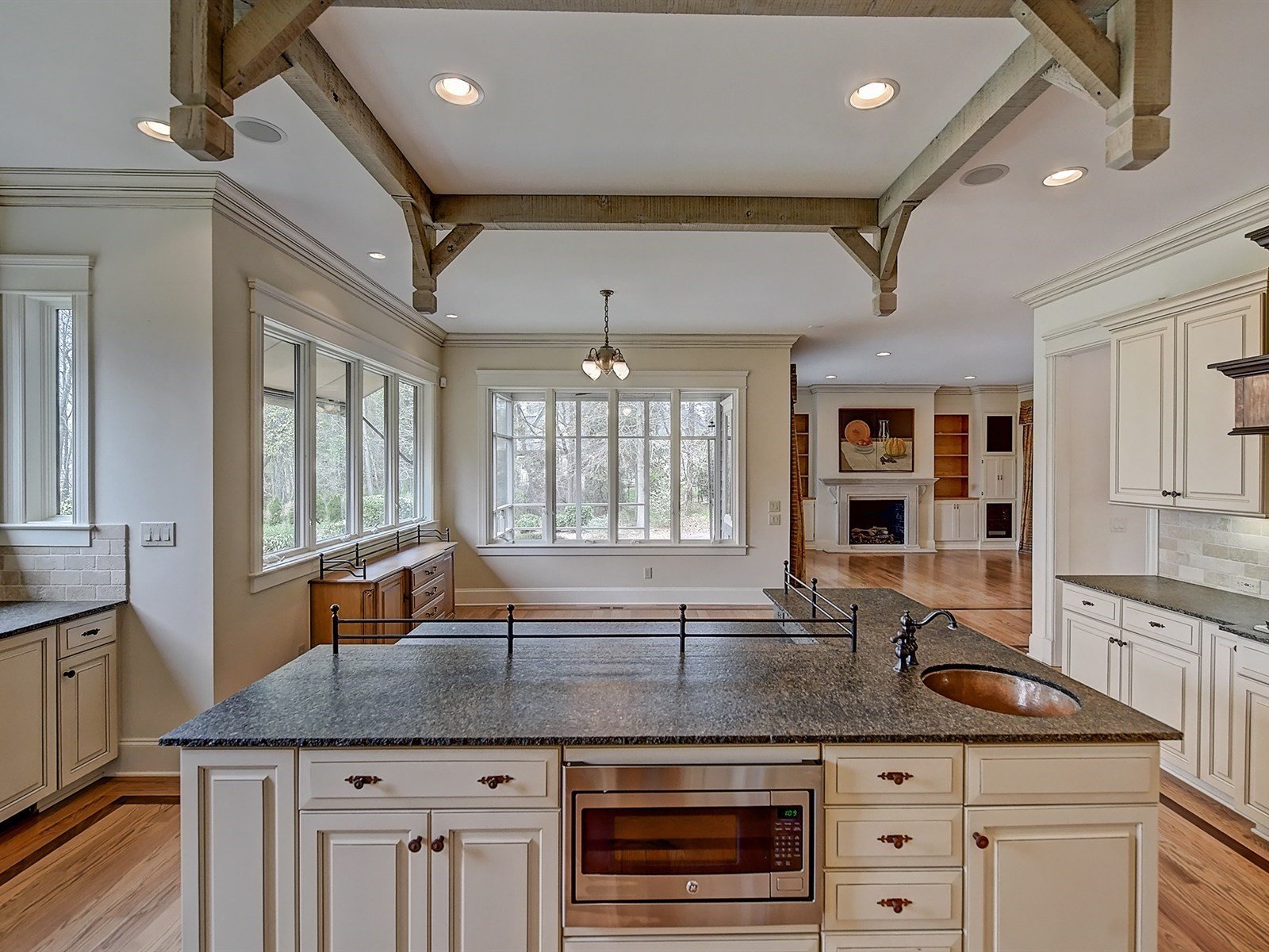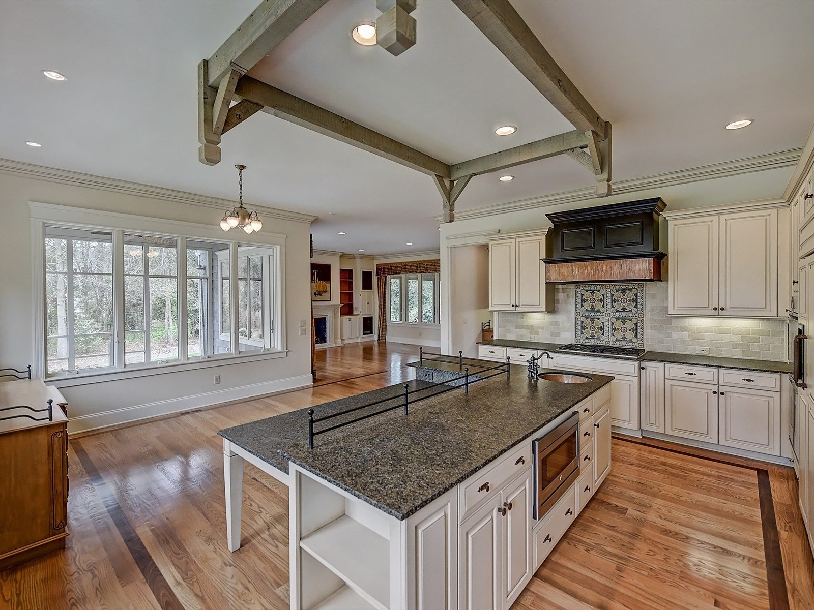 ONE OF A KIND, Authentic Nantucket Home, with custom architecture & loaded with high end designer details. Elegant, neutral décor….a timeless beauty. Handcrafted details throughout…mini bar in library, lighted art-niches, chef’s kit w/copper prep sink, four season sunroom, vaulted, wood beamed Owners Suite, with toasty warm heated tile bath flooring.