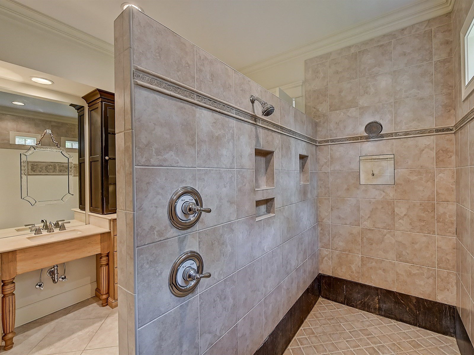 - Heated floors in bath